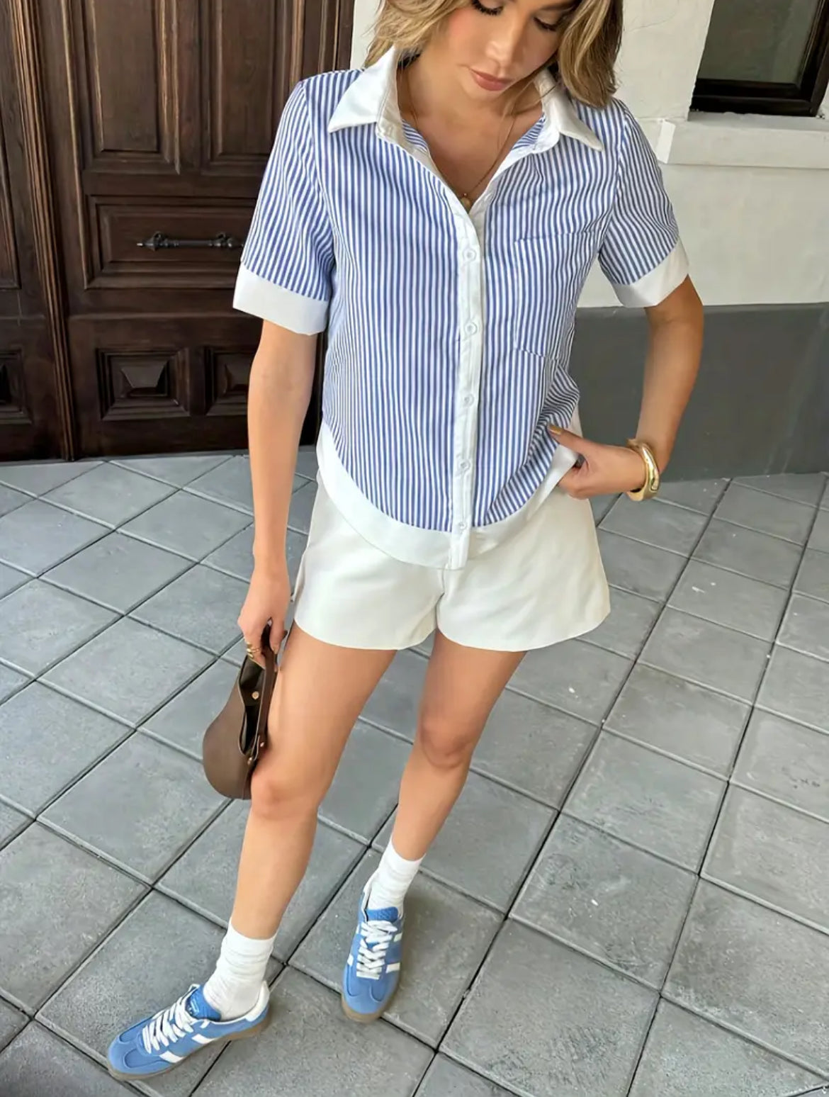 Color block button down